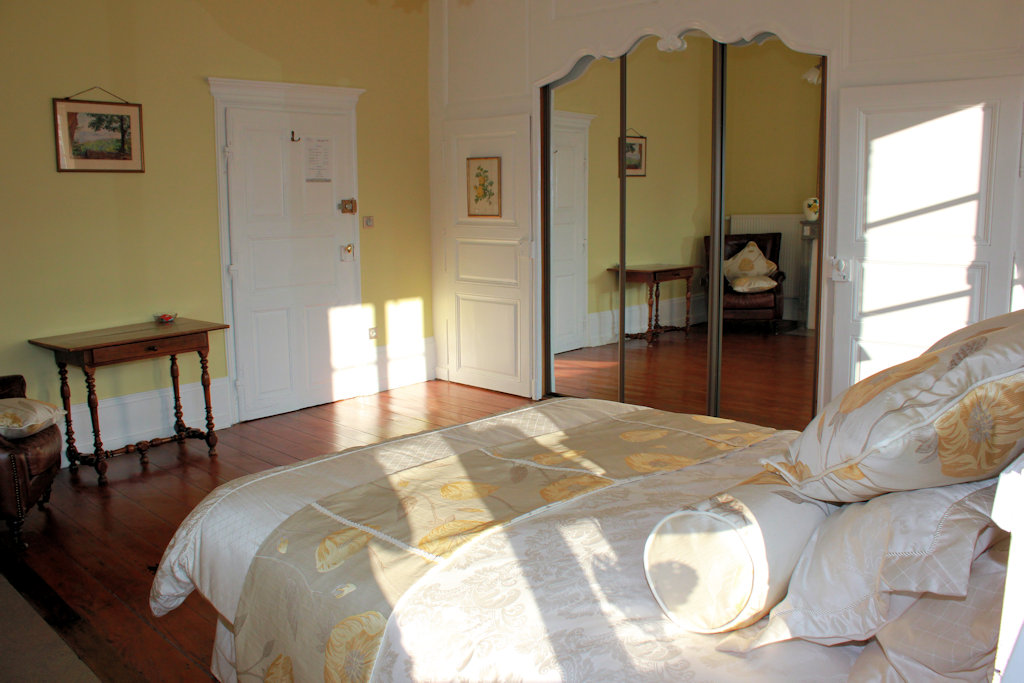 Cette chambre de 22m2 est située au premier étage avec une vue sur notre beau jardin. Elle dispose d’un grand lit double de 160x200cm, d’une armoire de rangement et d’un fauteuil. Elle dispose également d'une belle cheminée décorative et d'un grand miroir.